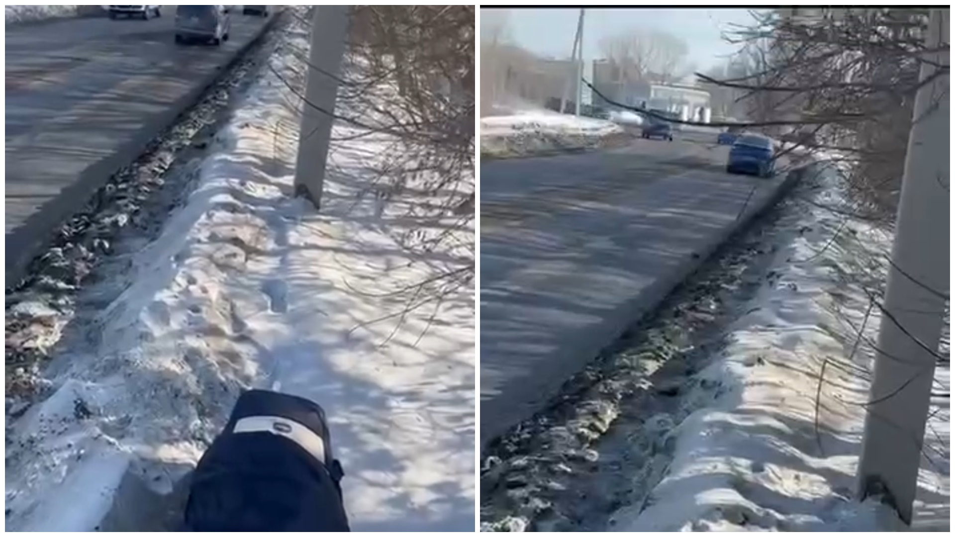 Видео авторының айтуынша, бұл бағытпен ата-аналар күн сайын балаларын ертіп емханаға барады. Алайда көшеде жаяу жүргіншілерге арналған қалыпты тротуар жоқ. Жол жиегі ойылған, қар тазаланбаған, ал көліктер жоғары жылдамдықпен қатынайды. Ауа райы қолайсыз күндері балалармен жүру тіпті қауіпті.