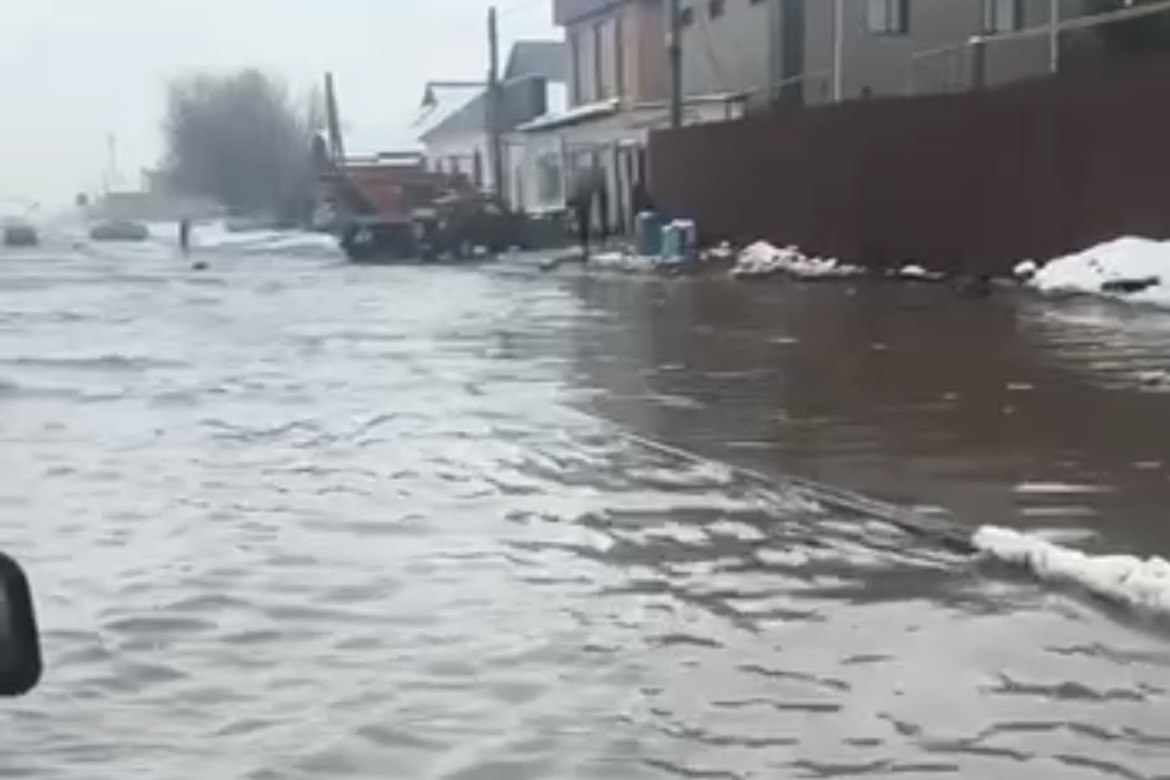 Әлеуметтік желіде тараған видеода Өтегенов көшесін қалың су басқаны анық көрінеді. Қардың күрт еруінен жиналған су жол бойына сыймай, тұрғын үйлердің маңына дейін жайылған.