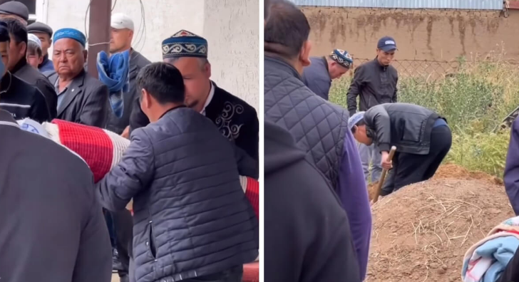 Жерлеуге қатысқандар қарасы көп. Жерлеу рәсімін Батыр блогер өз парақшасына жүктеген.