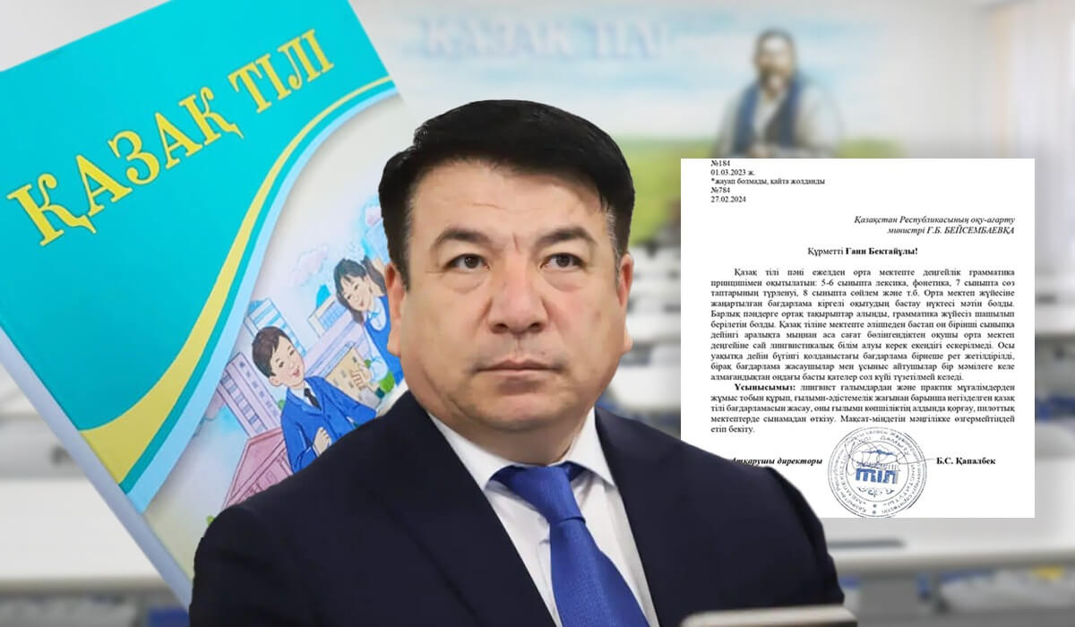 Ол орта мектептердегі қазақ тілі пәнінің мүшкіл жағдайына алаңдап, Оқу-ағарту министрі Ғани Бейсембаевқа екі жыл қатарынан хат жолдаса да, еш жауап алмағанын айтады.