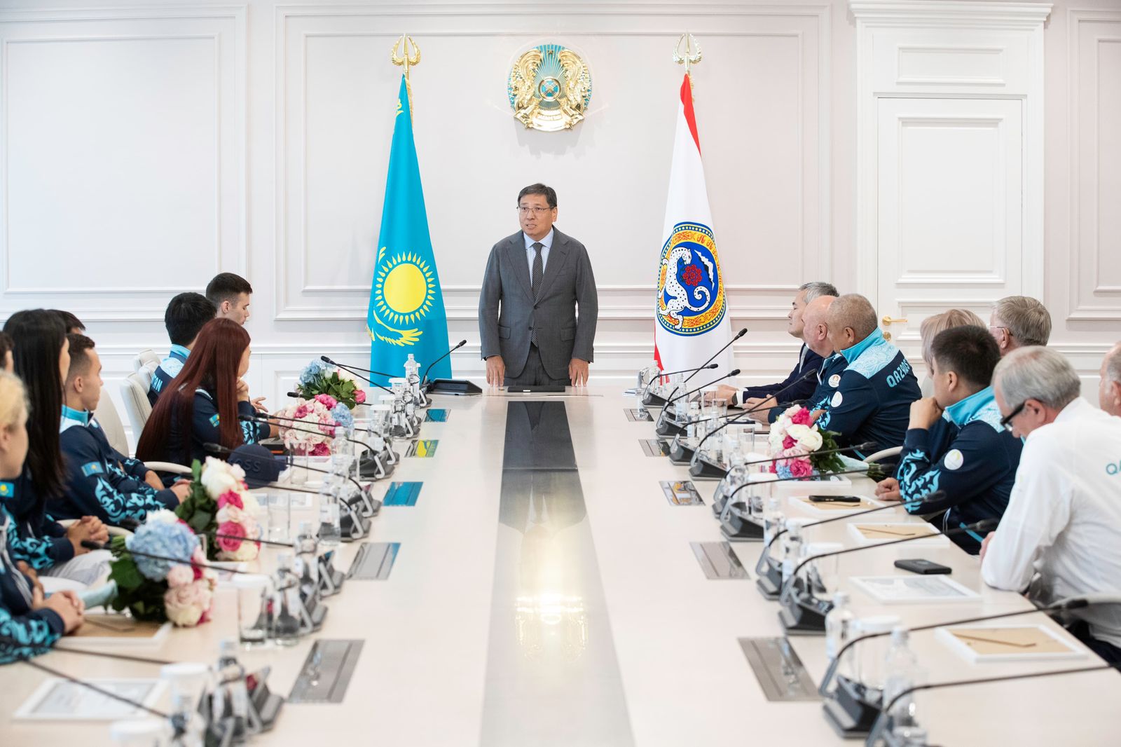 Шаһар басшысы спортшылар мен жаттықтырушыларды Олимпиаданың күміс жүлдегері – гимнаст Нариман Құрбановты, қола жүлдегерлер – дзюдошы Ғұсман Қырғызбаевты, боксшы Назым Қызайбайды және оқ атудан сайысқа түскен мергендер Александра Ле мен Ислам Сәтбаевты жетістіктерімен құттықтады.