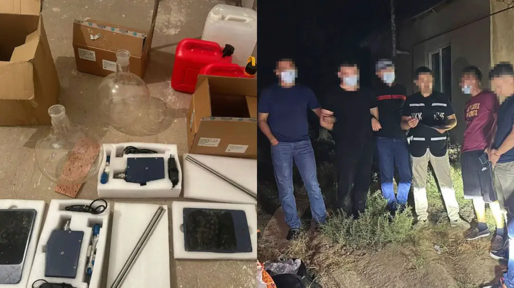 КНБ мәліметінше, күдіктілердің үстінен 4 килограммға жуық психотроптық зат, 50 литр прекурсорлар (есірткі өндіруге қажетті химиялық заттар), шетел валютасындағы қомақты қаржы және синтетикалық есірткі өндіруге арналған зертханалық құрал-жабдықтар тәркіленді.
