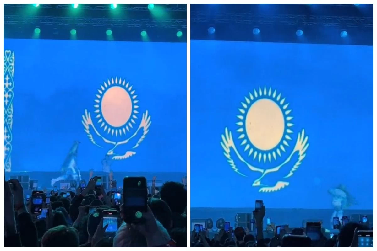 Сахнаға самокатпен шығып, мемлекеттік туды бей берекет сілкіген америкалық әнші сынның астында қалды (видео)