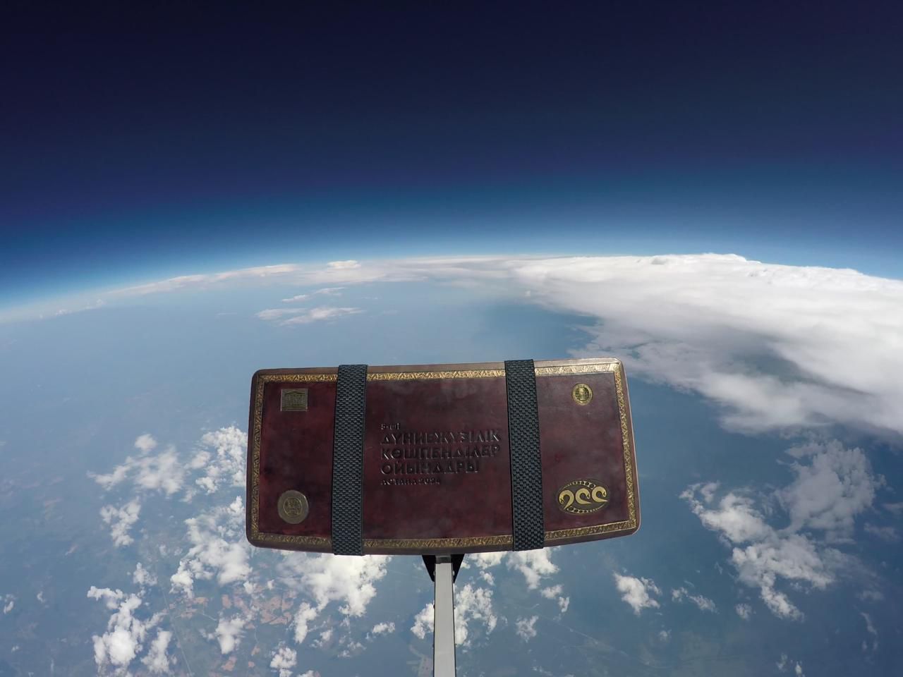 V Дүниежүзілік көшпенділер ойындарын қолдау және ұлттық мұраны насихаттау аясында бұл стратегиялық ойын горизанталь бағытта 108 шақырымды еңсеріп, 28 324 метр биікке көтерілді. Ұшу барысында төменгі температура -55°С — ге жетті.