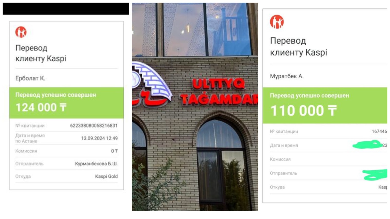 «2023 жылдың соңында Е.Төлеповқа «құттыбосын» айтып Түркістанға Астанадан Қалижан Заңқоев, Ерболат Жүсіпов секілді рулас үш-төрт имам келді. Бас имам қонақтарды «Кәусар» мейрамханасына ертіп барды, олар бір отырғанда 114 мың 200 теңгенің тамағын жеді. Е.Төлепов «ақысын ертең төлейміз… аумин» деп кеткен. Рас, төлемей туалай алдап кеткен жоқ әрине. Бірақ мейрамхана егелерін әбден «зар жылатып» жүріп қарызды әрең берді. Ол ақшаны Е.Төлепов қалтасынан шығарған жоқ. Бас имамның бухгалтері Құрманбекова мешітке жиналған ақшадан 110 мыңды «Кәусардың» қожайынына аударды. «Кәусардың» қожайыны Муратбек: «4200 тенге остаток тоже осы номерге аударып жіберіңіз» деген соң қалған соманы да жіберді (суретті қараңыз).