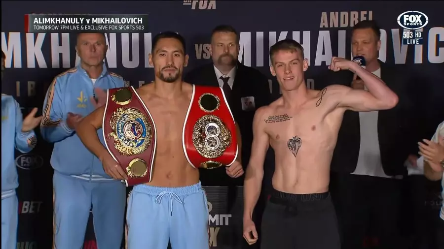 Қазақстандық кәсіпқой боксшы Жәнібек Әлімханұлы (15-0, 10 КО) жаңазеландиялық Андрей Михайловичке (21-0, 13 КО) қарсы жекпе-жек алдында салмақ өлшеуден сәтті өтті.