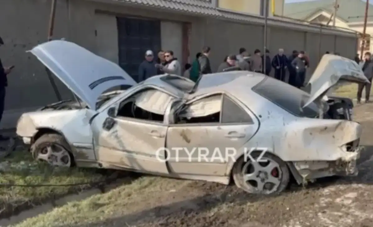 Mercedes-Benz жүргізушісі рөлге ие бола алмай, жоғары жылдамдықпен жарық бағанына соғылған.