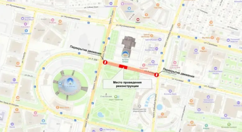 «Осыған байланысты, Астана ПД әкімшілік полиция басқармасының келісімі бойынша осы жылдың 19 ақпанынан 30 қазанына дейін Қонаев көшесінің Қабанбай батыр даңғылынан Тұран даңғылына дейінгі жол бөлігі жабылады. Бұл ретте автокөлік құралдарының қозғалысы іргелес Достық және Сарайшық көшелерімен қамтамасыз етілетін болады. Елорда тұрғындары мен қонақтарынан қала жолдарындағы кептелістерді болдырмау мақсатында өз маршруттарын алдын ала жоспарлауды сұраймыз. Уақытша қолайсыздықтар үшін кешірім сұраймыз және жол-құрылыс жұмыстарының жүргізілуіне түсіністікпен қарауды сұраймыз», — делінген хабарламада.