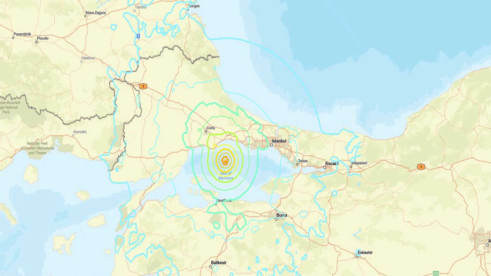 Түркияның Төтенше жағдайлар және апаттарды басқару басқармасының (AFAD) мәліметінше, алғашқы жер сілкінісі Ыстамбұлдың Силиври жағалауында 12:13-те (жергілікті уақытпен) 3.9 магнитудамен басталып, негізгі дүмпу – 6.2 магнитудалы – сол аумақта 12:49-да болған. Ал 4.4 магнитудалы үшінші дүмпу Бүйүкчекмедже ауданында 12:51-де тіркелді.