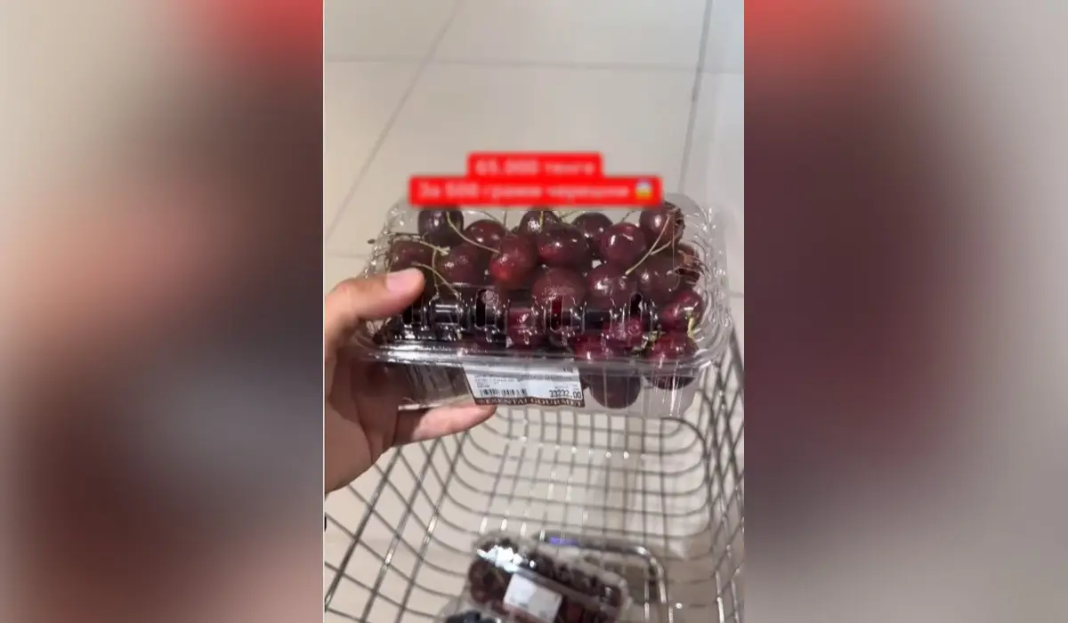 Ол дүкен аралап жүріп, екі бөлек жұқа контейнерге салған шие алыпты. Бір қораптағы шиенің салмағы 300 грамм, ал бағасы 33 мың теңге болған. Осылайша ол екі қорап шие 65 мың теңгеге тең болғанын айтады.