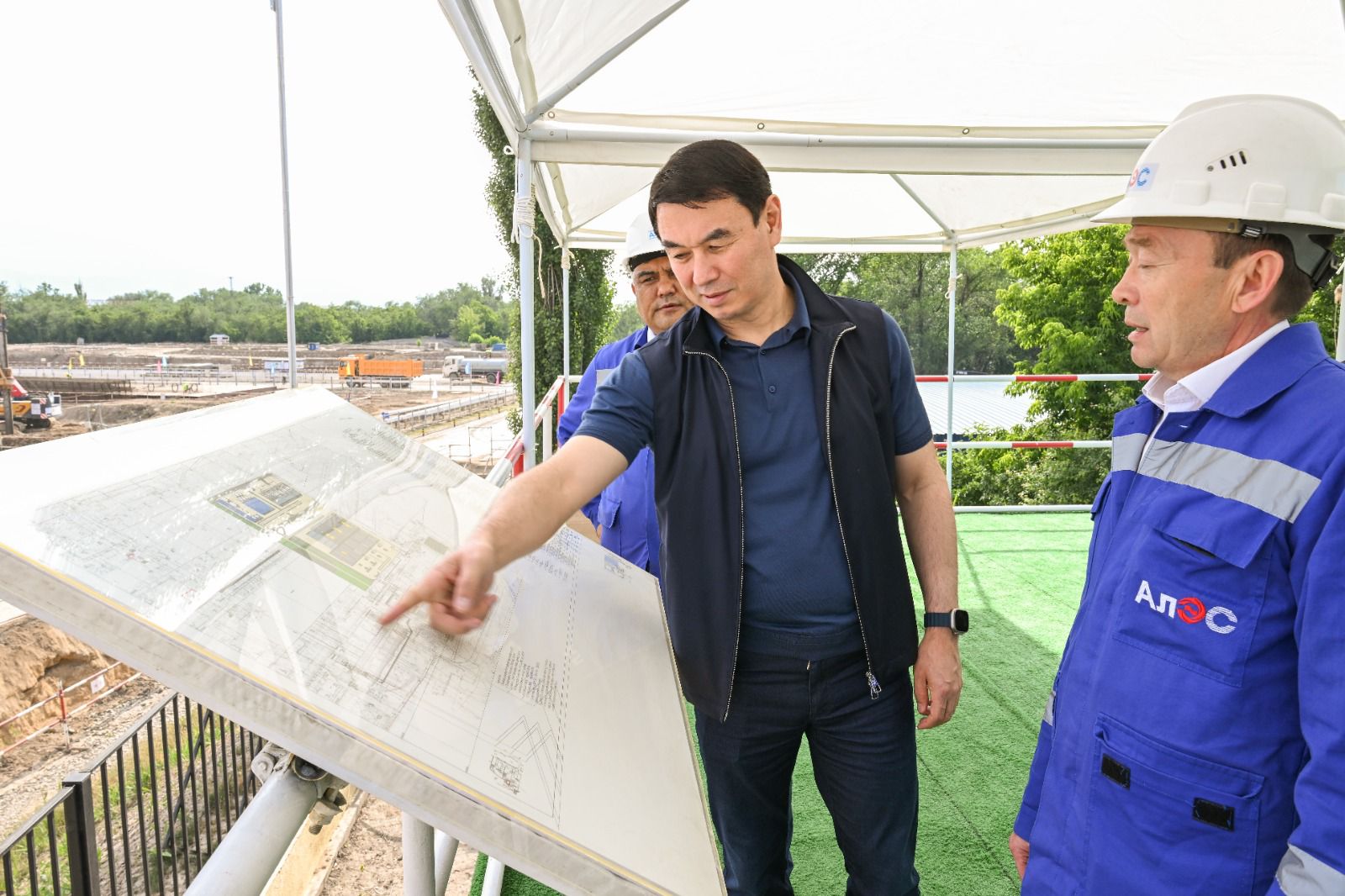 Қала әкіміне қада қағу жұмыстарының 47%-ы орындалғаны, іргетас құю мен құрылымдарды орнату жұмыстары жалғасып жатқаны, негізгі жабдық жеткізіліп жатқандығы туралы баяндалды. Сонымен қатар, қысқы маусымға дайындық аясында жөндеу жұмыстары жүргізілуде: 56-сын жөндеу жоспарда болса, соның 36%-ы біткен.
