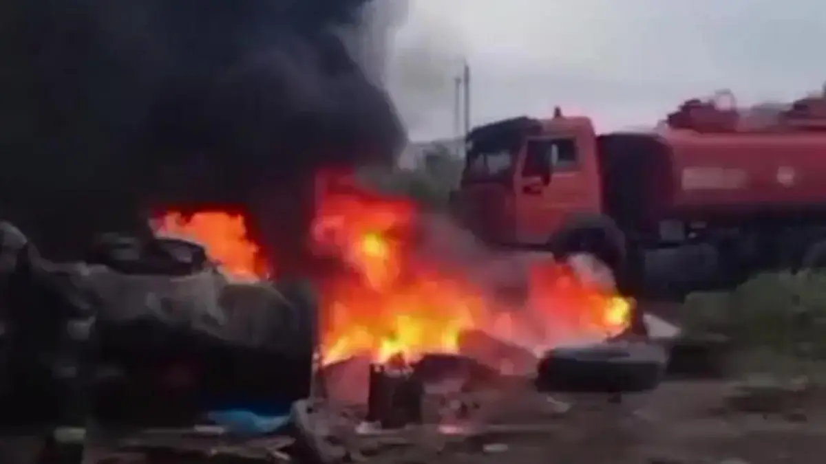«Ақтөбе қаласында Курсантское тас жолының бойында орналасақан ЖШС аумағында 2 жүк көлігі мен автомобиль шиналары жанды.