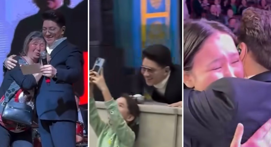 Сондай-ақ, өнер иесімен кездескен тыңдарманы мен бейтаныс келіншек Сәкен Майғазиевті құшақтап, егіліп жылады.