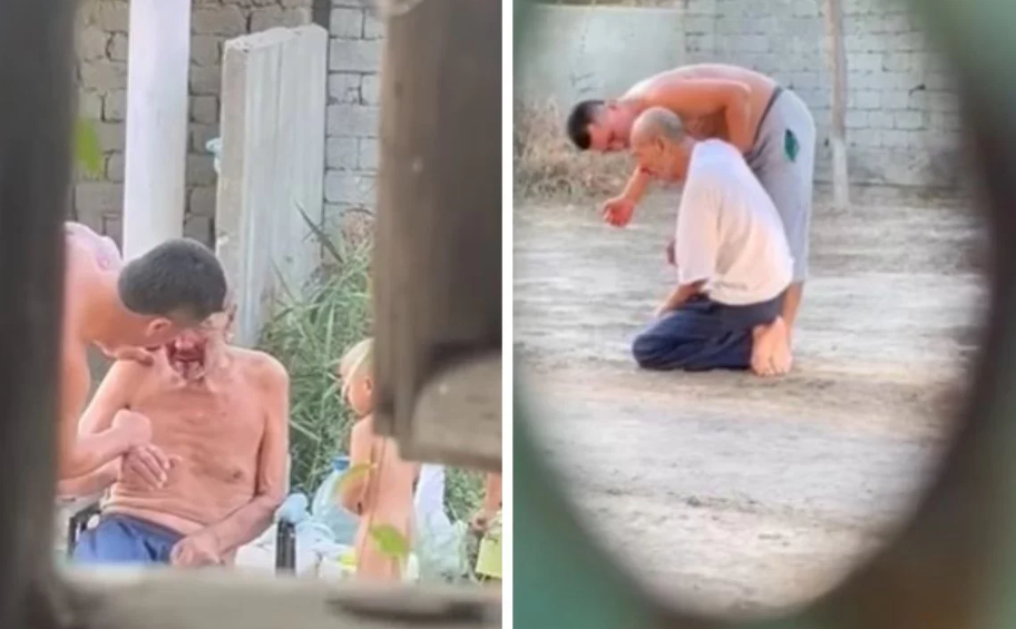 Ер адам жуындырғалы жатқан қартты балағаттап, “екі қабырғаңды сындырамын” деп қорқытты. Енді бір кадрдан ақсақалдың жолдың үстінде аяққа тұра алмай отрығанын көруге болады.