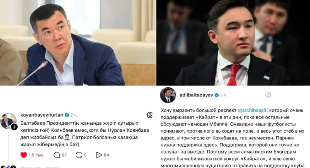 «Біздің футболшылар кімге қарсы шығып жатқанын түсінеді, сондықтан оларға қатысты бұл әзілдер, соның ішінде Қоянбаевтың әзілі де орынсыз. Жігіттерге осы жерде қолдау керек… Сондықтан алматылық блогерлердің барлығы «Қайраттың» айналасына жиналып, өздерінің миллиондаған аудиториясын клубты қолдауға жіберуі керек», — деп жазды Балтабаев.
