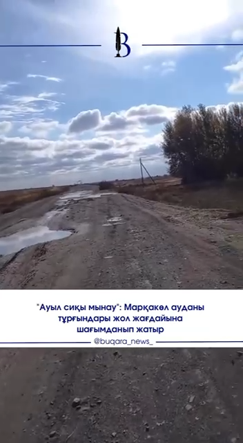 Шығыс Қазақстандағы Марқакөл ауданының тұрғындары ауылға кіреберіс жолдың қираған күйіне шағымданды. Әлеуметтік желіде тараған бейнежазбада көліктердің шұңқыр мен батпақ арасынан әрең өткен сәттері көрсетілген.