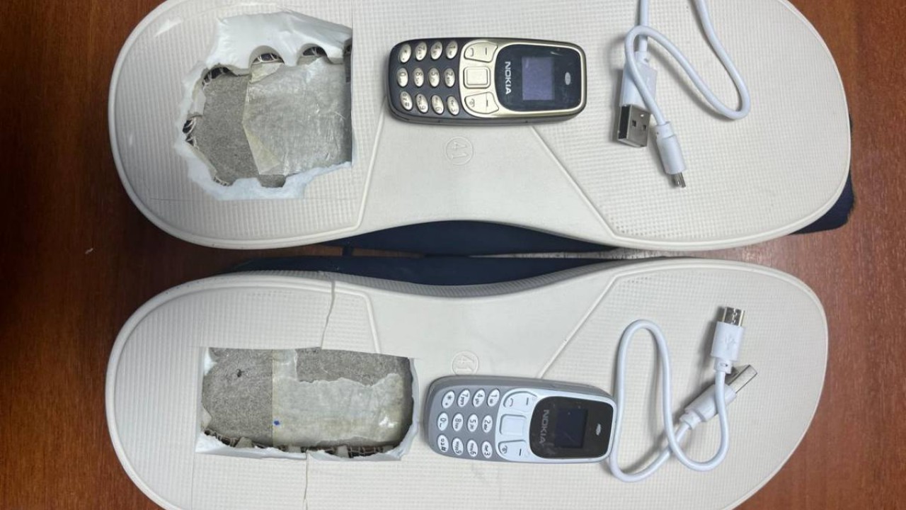 Мекеменің жедел және режим бөлімдерінің қызметкерлері сәлемдемеге тексеріс жүргізу кезінде жазғы аяқ киімнің табанына мұқият жасырылған 2 ұялы телефон, 2 SIM-карта және 2 USB-шнурды тапты.