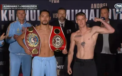 Фото: No Limit Boxing Сиднейде өткен кәсіпқой бокс кешінде қазақстандық Жәнібек Әлімханұлы (16-0, 11 КО) жаңазеландиялық Андрей Михайловичті 9-раундта нокаутпен жеңді. (21-1, 13 КО), деп хабарлайды Qazaq Today ақпарат порталы. Осылайша отандасымыз орта салмақтың екі чемпиондық (WBO,IBF) титулын қорғады. Бокс кеші тікелей эфирде “Қазспорттан” көрсетілуде. Сонымен қатар, жекпе-жек алдында ұйымдастырушылар Қазақстанның ескі әнұранын қосып жіберді….