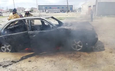 Қарағандының қақ ортасында жеңіл көлік өртеніп кетті