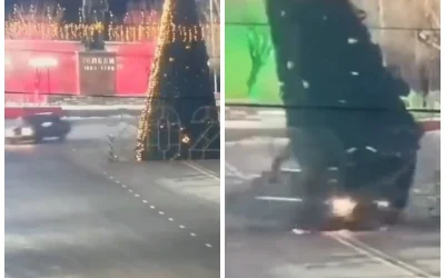 Фото: Видеодан скрин Түркістан облысында көлік жүргізушісі орталық алаңдағы жаңа жылдық басты шыршаны соғып құлатып кеткені анықталды. Оқиға бойынша жүргізуші әкімшілік жауапкершілікке тартылды, деп хабарлайды Qazaq Today ақпарат порталы. Ішкі істер министрлігінің мәліметінше, оқиға түнгі шамамен 03:00-де болған.«Сарыағаш аудандық полиция басқармасына белгісіз автокөліктің орталық алаңдағы шыршаны зақымдап, оқиға орнынан жасырынғаны туралы ақпарат түсті. Полиция қызметкерлері…
